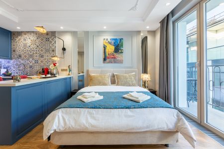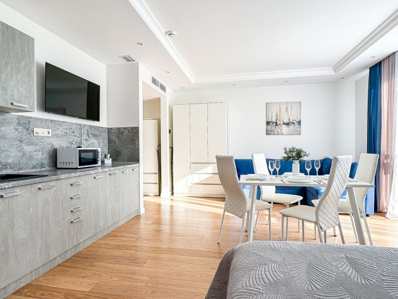 «Апартаменты Монако 24 в Резиденции Граф Толстой» расположены в центральной части г. Анапа. Апартаменты оборудованы удобной и современной мебелью, кухней, собственным санузлом с душем. Комплектация апартаментов включает: сплит-систему, телевизор ЖК, холодильник, электрическую плиту, набор посуды, электрочайник, стиральную машину, сушилку для белья, пылесос, утюг, гладильную доску.